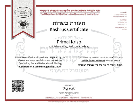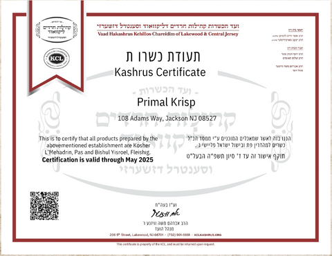 Enjoy bold flavor, high protein, and peace of mind knowing your favorite Primal Krisp snacks are certified Kosher.