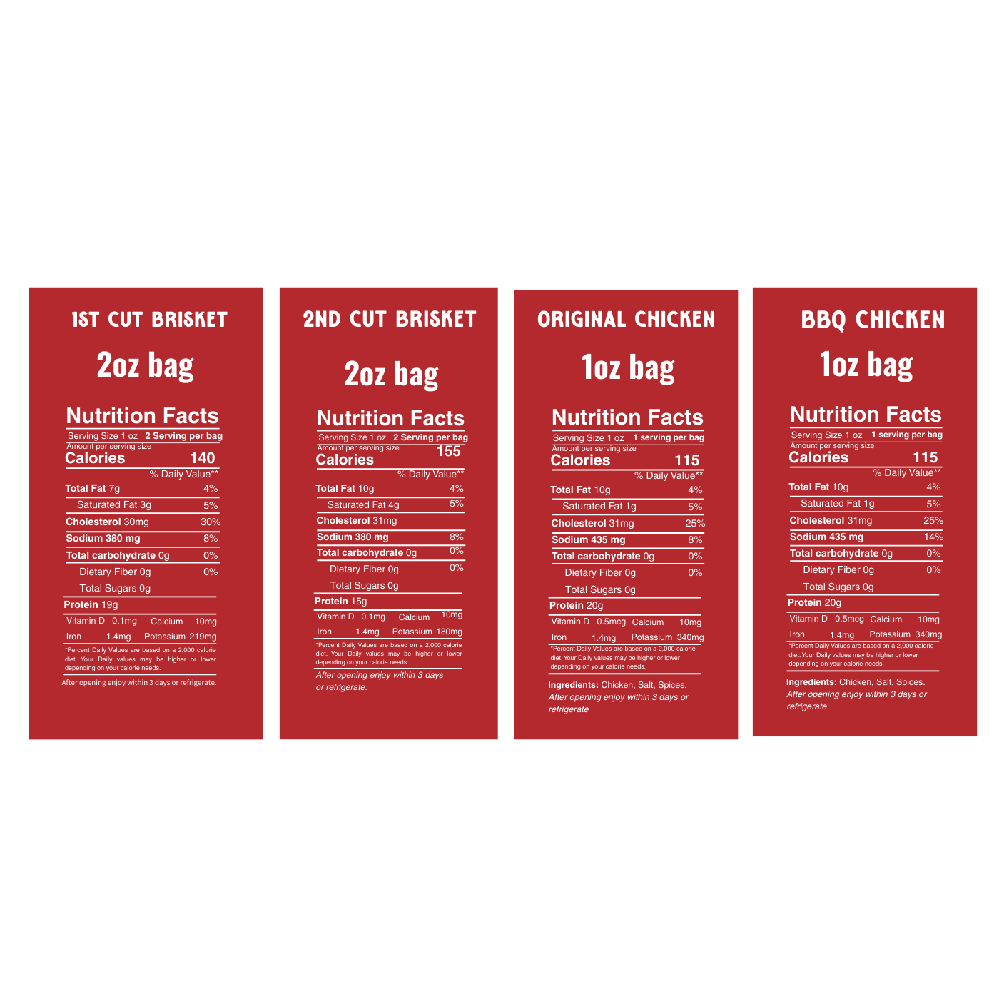 • Taste It All — Sample every flavor in one pack — 1st and 2nd cut brisket, classic chicken, BBQ chicken.